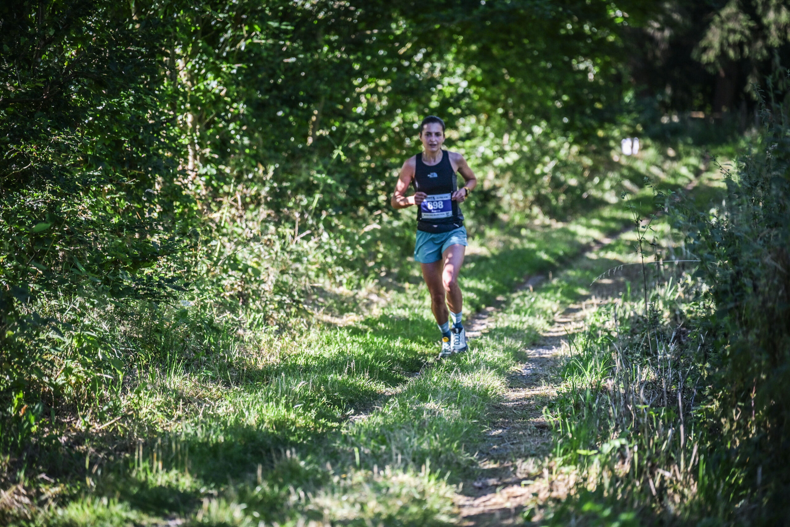 Nach einem längeren Bergab-Stück verlasst ihr die Marathonstrecke für die letzte Extra-Schleife. Nach einem kurzen, sehr steilen Trail wird es ruhiger auf der Strecke, denn jetzt sind die K70 Läufer:innen unter sich.